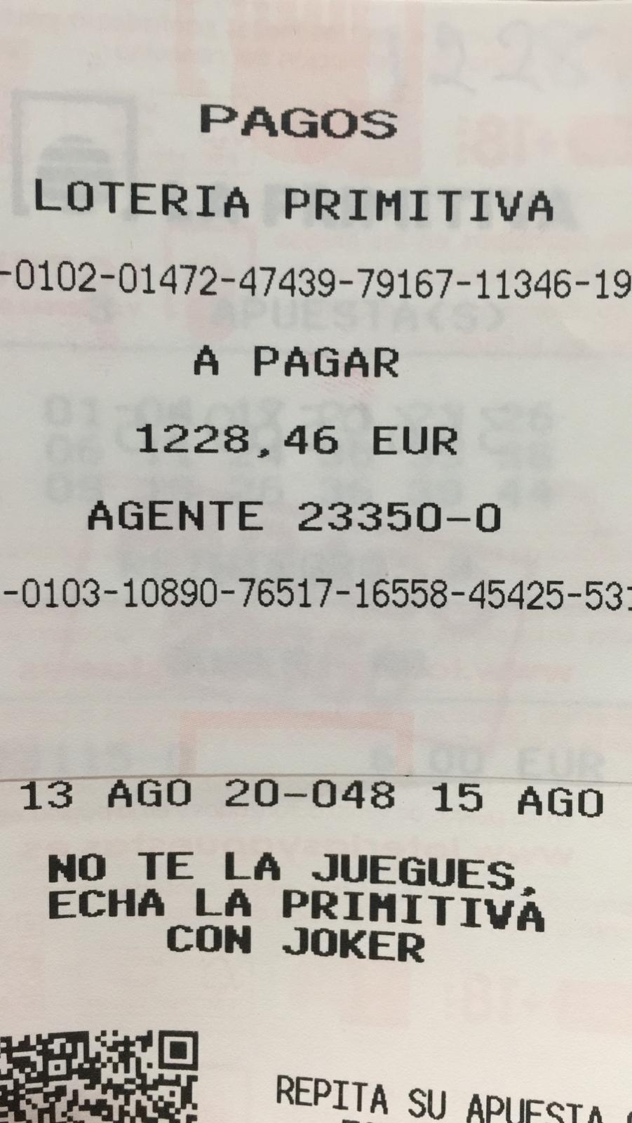 ¡Nuestros clientes, a mirar los resguardos de la primi de hoy! Acabamos de dar un premio de 82.688,27 € en la Primitiva de hoy....¡bien!