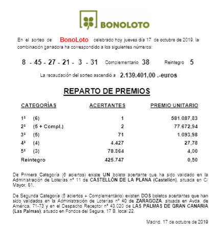 Los 587.166,72 euros del premio de 1ªcategoria de la BONOLOTO ….¡lo hemos dado NOSOTROS!